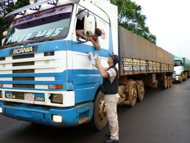 (12) com a abordagem de caminhoneiros por guardas portuários e agentes da Polícia Rodoviária Federal (PRF). A ação está sendo realizada no km 580 da BR-277, a quatro quilômetros da entrada de Cascavel. O objetivo é evitar filas e outros transtornos para os motoristas de caminhão e usuários das rodovias.